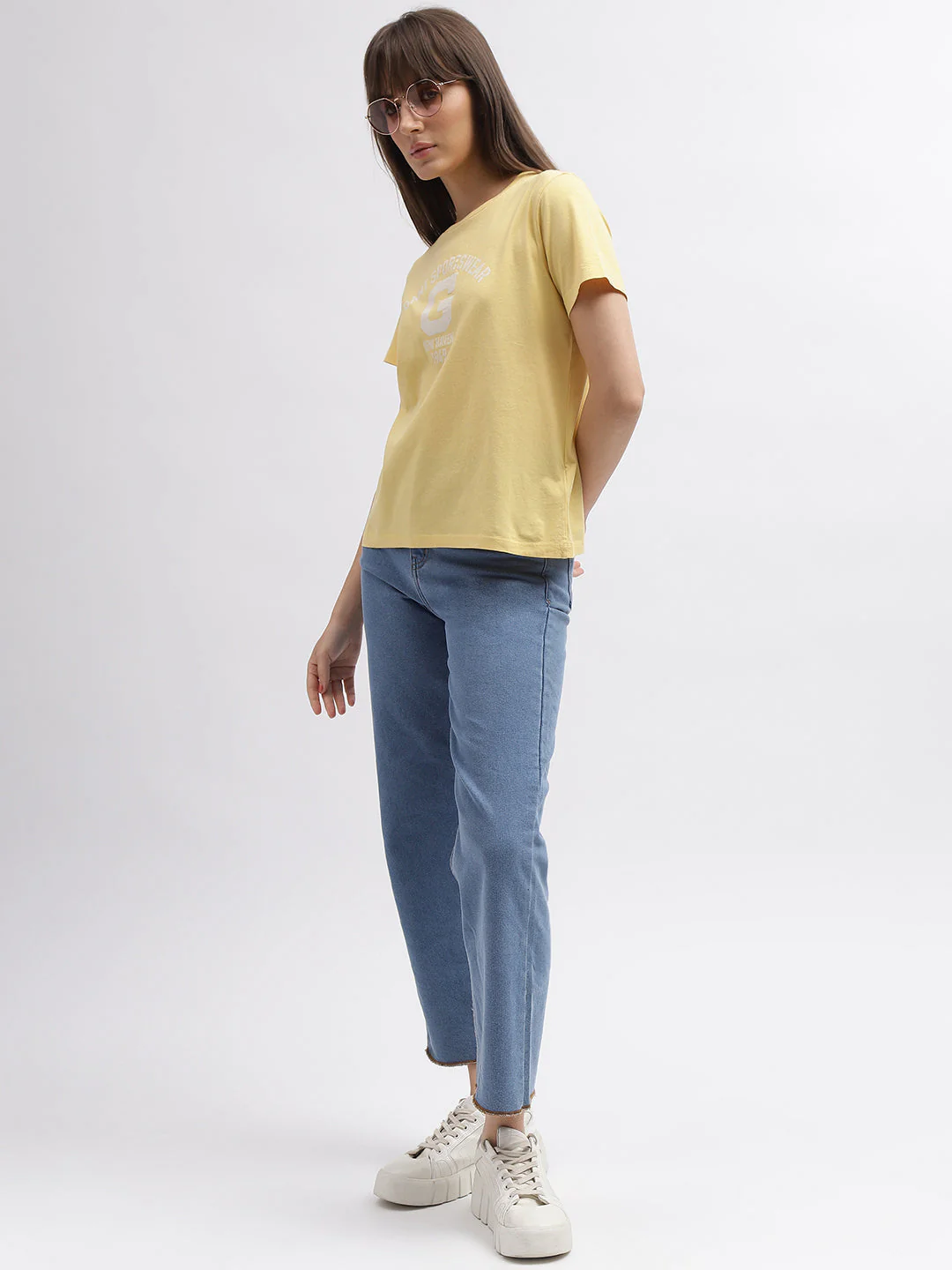 Gant Women Yellow Solid Round Neck Short Sleeves T-Shirt